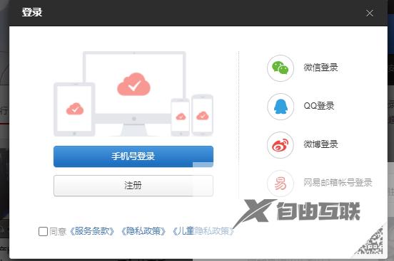 3、最后就会自动弹出登录窗口,通过手机就能够注册也能够直接通过微信登录。