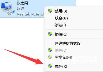 4、在其中右键当前网络连接,点击属性。