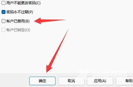5、取消账户禁用,然后重启就可以了。