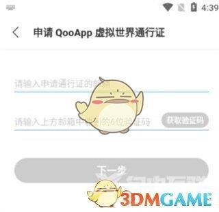 4、最后我们在申请Qoo App虚拟世界通行证的页面中我们输入申请通行证的邮箱账号之后在输入验证码后点击【下一步】即可。
