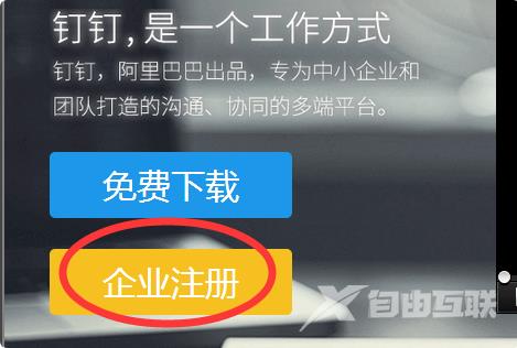 1、首先进入钉钉官网,点击进行“企业注册”。