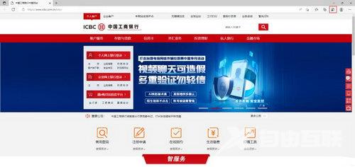 4、打开一个要在internet explorer 模式访问的网页, 点击工具栏上的“e”图标按钮。