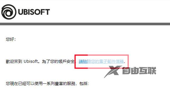 6、最后去我们刚刚设置的邮箱里,打开收到的育碧邮件,点击“蓝字”通过验证即可完成账号注册。