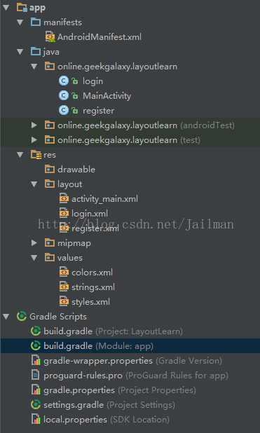 <?xml version="1.0" encoding="utf-8"?> <manifest xmlns:android="http://schemas.android.com/apk/res/android" package="online.geekgalaxy.layoutlearn"> <application android:allowBackup="true" android:icon="@mipmap/ic_launcher" android:label="@string/app_name" android:roundIcon="@mipmap/ic_launcher_round" android:supportsRtl="true" android:theme="@style/AppTheme"> <activity android:name=".MainActivity"> <intent-filter> <action android:name="android.intent.action.MAIN" /> <category android:name="android.intent.category.LAUNCHER" /> </intent-filter> </activity> <activity android:name=".login"> <intent-filter> <action android:name="android.intent.action.MAIN" /> </intent-filter> </activity> <activity android:name=".register"> <intent-filter> <action android:name="android.intent.action.MAIN" /> </intent-filter> </activity> </application> </manifest>