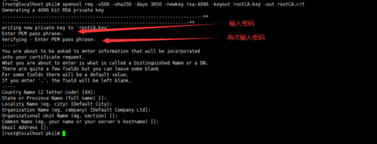 然后给服务端证书签名,会提示你输入 rootCA 的密码