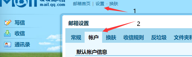 登录qq邮箱后,点击左上方的设置,选择账户,如下图。
