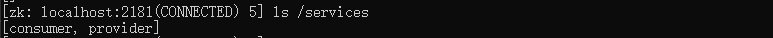 3.启动zookeeper服务器和服务(我这边是启动了两个服务,分别是provider和consumer),然后在zookeeper客户端中可以查看已经注册到zookeeper中的服务: